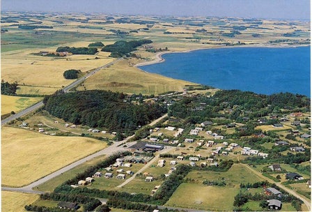 Struer Stadion i Bremdal, nu som campingplade, også med Venø i baggrunden